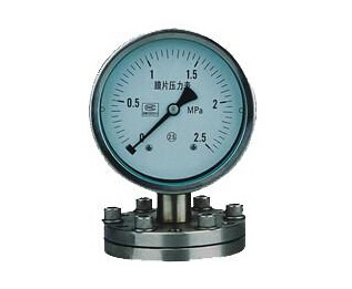 原理:膜片式壓力表是膜片作為儀表的強性元件,當(dāng)被測介質(zhì)的壓力作用到膜片上,膜片產(chǎn)生一個位移,再經(jīng)過機芯部件,指針部件的工作,使要測的 壓力清楚地在刻度盤上指示出來。
